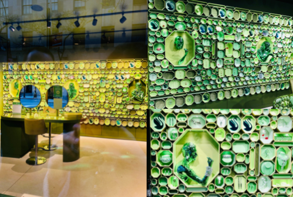 - Walking through the Rockefeller Center area in NYC I suddenly come across a green store, yes! Totally green, full of shine, where my first impression was to think it was a museum, or a chocolate shop, when, oh surprise, it was SWAROVSKI. At that moment the “retail nerd” in me screams for photos … which I access without any problem.